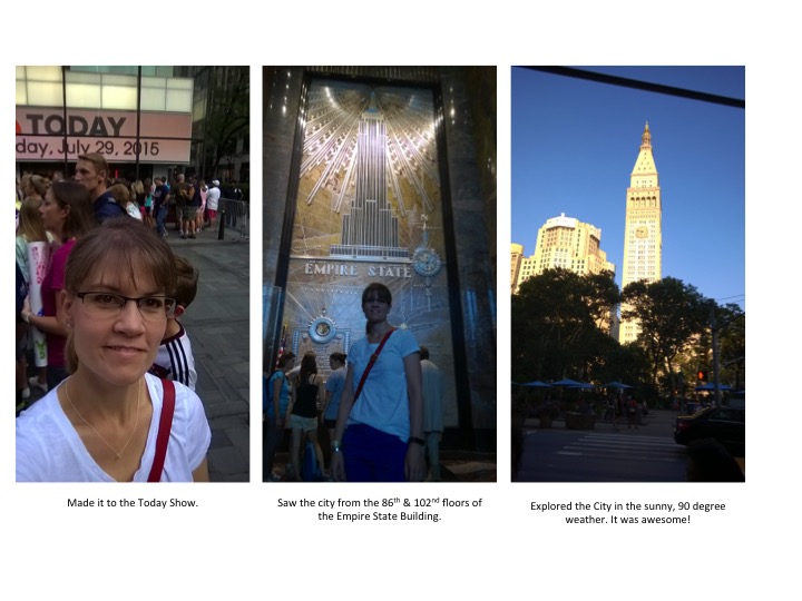 So I said yes to the opportunity and started planning my trip. Yep, I’m a planner. In order to make the most of the few free hours I had I wanted to leave as little to chance as possible. I made my list of things to do and see. My top must dos were: get on The Today Show and “get to the top of something” to see views of the city.